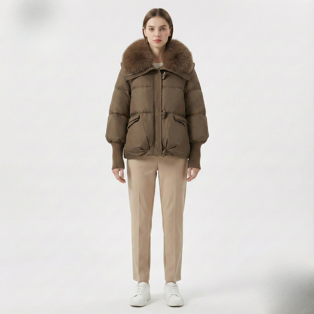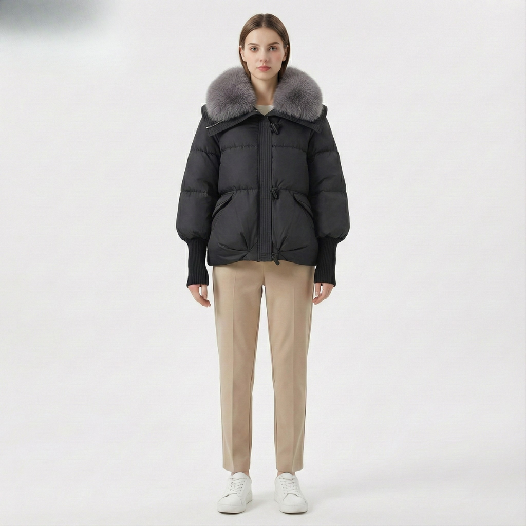 S luksuznim, voluminoznim ovratnikom od umjetnog krzna i visokokvalitetnim materijalima, Ajla je savršen izbor za one koji žele spojiti funkcionalnost s rafiniranim stilom. Dugi, rebrasti manžeti i debela podstava osiguravaju da jakna bude moderna i praktična – bez obzira nosite li je svakodnevno ili za večernji izlazak.